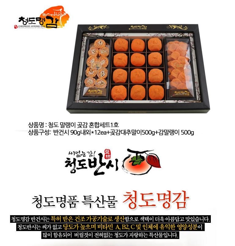 [청도명감] 말랭이 혼합세트1호 (반건시 90g내외*12ea+곶감대추말이+감말랭이 각500g)