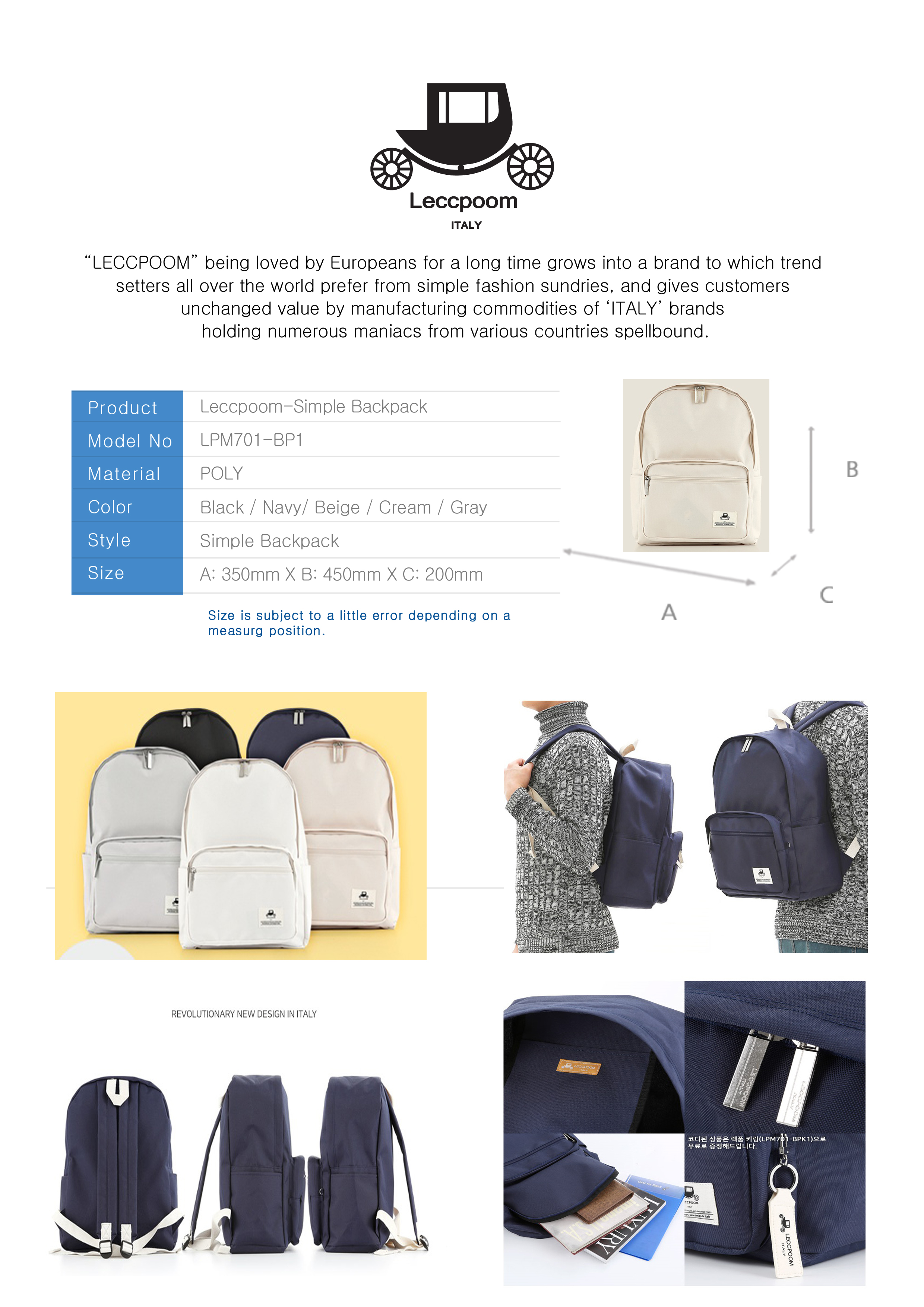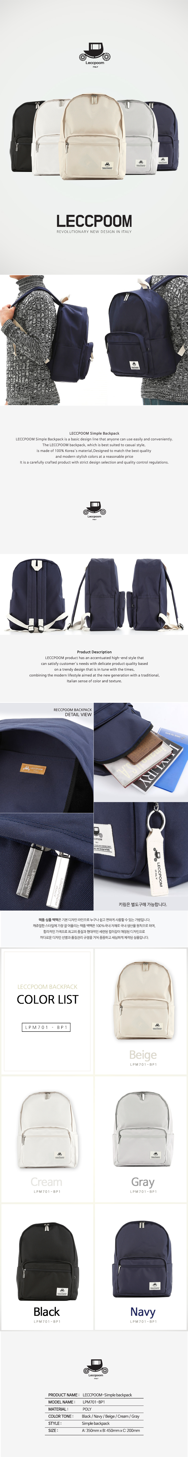 렉품 심플 백팩은 기본 디자인 라인으로 누구나 쉽고 편하게 사용할 수 있는 가방입니다.캐쥬얼한 스타일에 가장 잘 어울리는 렉품 백팩은 100%국내 자재로 국내 생산을 원칙으로 하며, 합리적인 가격으로 최고의 품질과 현대적인 세련된 컬러감이 매칭된 디자인으로 까다로운 디자인 선별과 품질관리 규정을 거처 꼼꼼하고 세심하게 제작된 상품입니다.