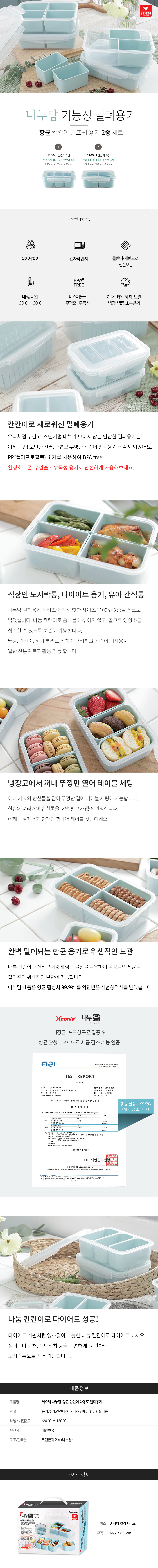 * 칸칸이 및 패킹에 세균의 번식을 막아주는 항균 물질을 함유해 위생적인 보관 가능