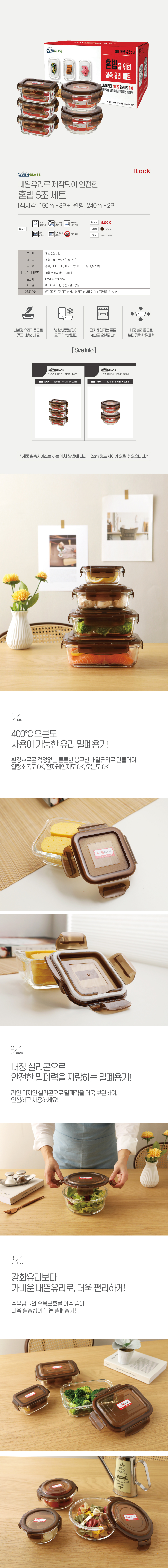 [무료배송]수퍼오븐글라스 한끼 반찬용 혼밥 5조 내열유리 밀폐용기 세트
