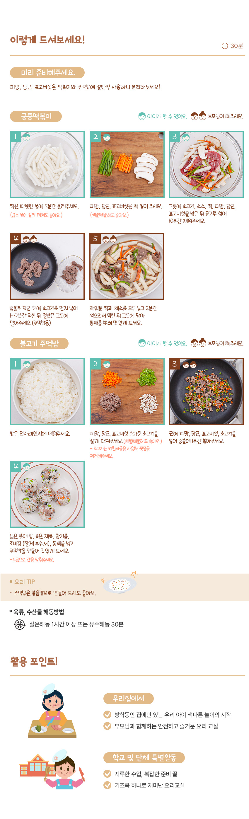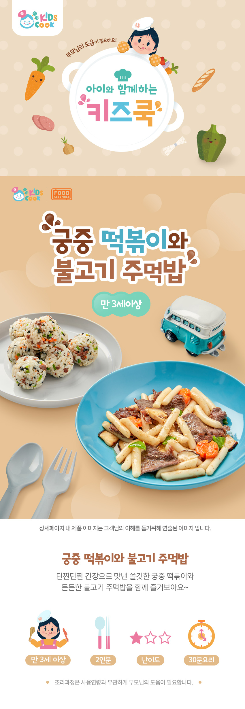 [푸드어셈블]키즈쿡 궁중떡볶이와 불고기주먹밥 밀키트(2인)