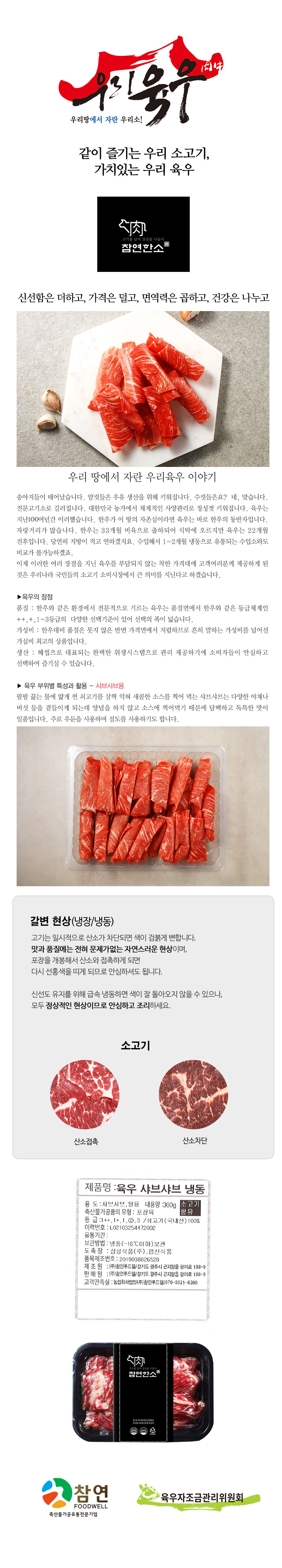 참연한소 샤브샤브 300g (냉동) 가치있는 우리 육우