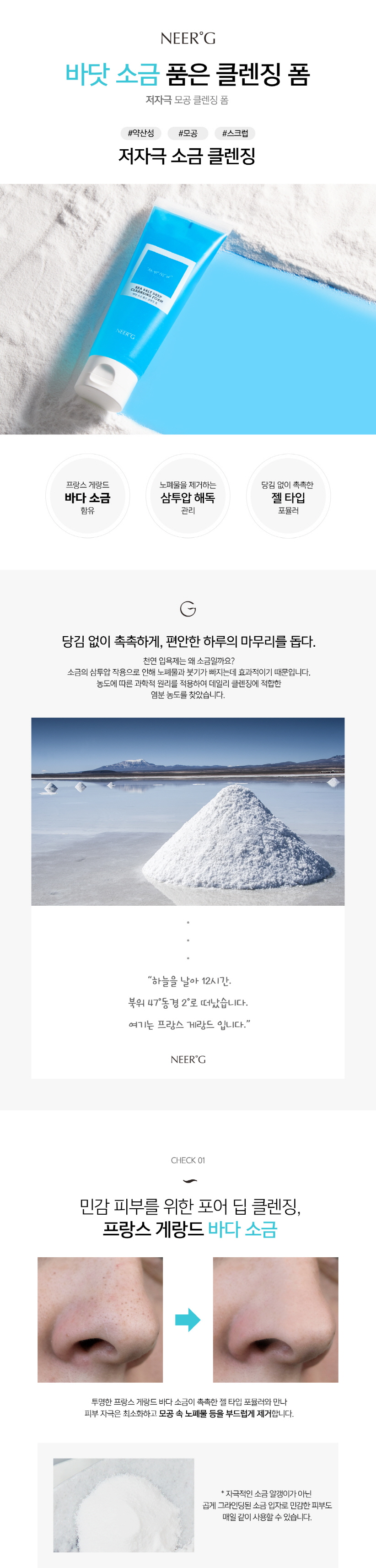 해수, 메틸프로판다이올, 1,2-헥산다이올, 글리세린, 병풀추출물, 무화과추출물, 불등가사리추출물, 인도멀구슬나무잎추출물, 인도멀구슬나무꽃추출물, 바다포도추출물, 아이비고드열매추출물, 당느릅나무뿌리추출물, 줄맨드라미씨추출물, 가지열매추출물, 알로에베라꽃추출물, 홀리바질잎추출물, 울금뿌리추출물, 참산호말추출물, 녹차추출물, 은행나무잎추출물, 동백나무잎추출물, 로켓잎추출물, 밀싹추출물, 브로콜리싹추출물, 자주개자리추출물, 하이드로제네이티드레시틴, 정제수, 부틸렌글라이콜, 소듐시트레이트, 시트릭애씨드, 다이소듐이디티에이, 글루코노락톤, 세라마이드엔피, 씨솔트, 하이드록시아세토페논, 에틸헥실글리세린