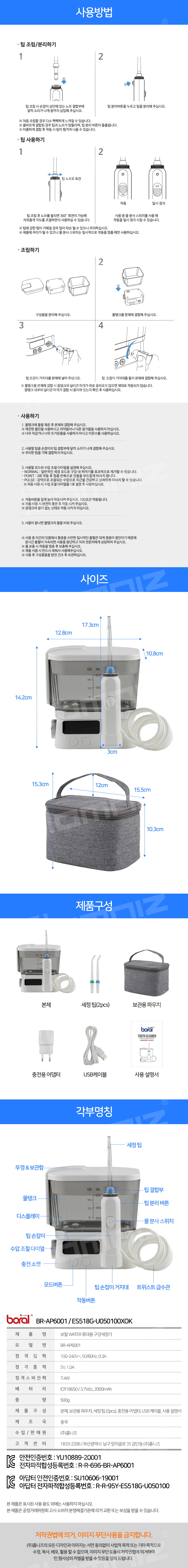● 600ML 대용량 분리형 물탱크 ● 360° 회전 팁 ● 원터치 팁 결합/분리