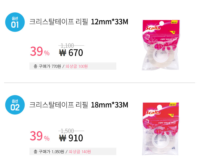 크리스탈테이프 리필 12mm*33M/18mm*33M