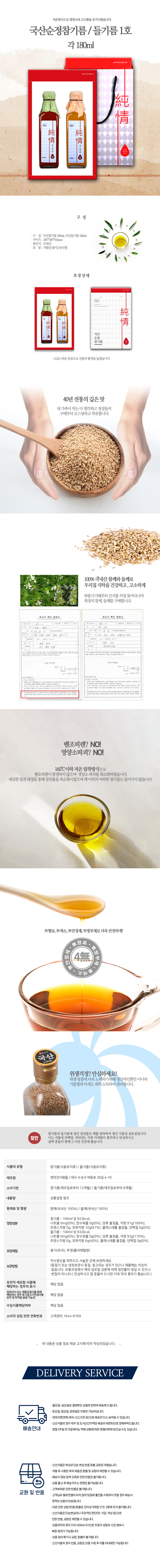 [국산]순정참기름/들기름세트 1호 선물세트(180ml*2)