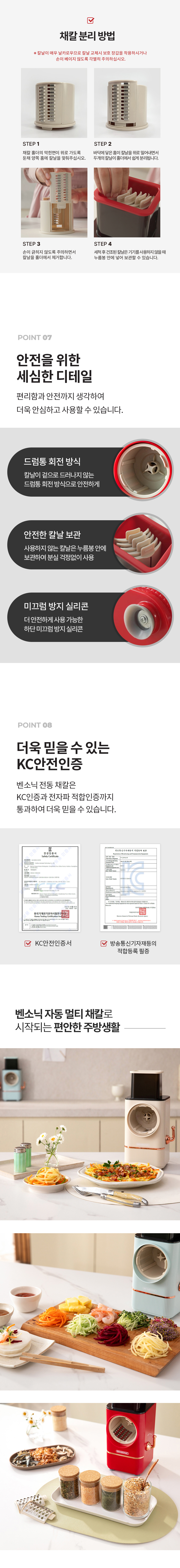 벤소닉 자동 멀티 채칼(레드,민트,크림)